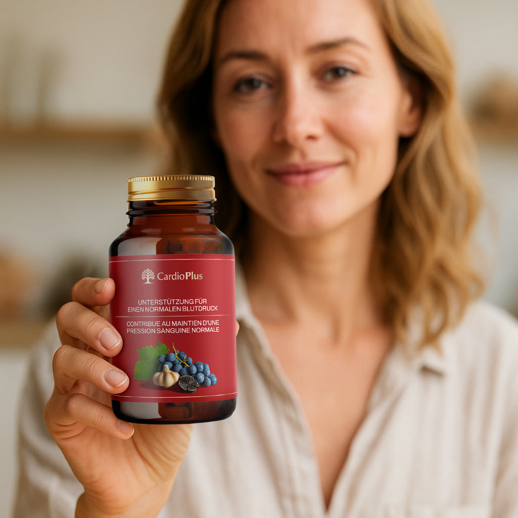 CardioPlus konzentriert sich auf das Herz, den Blutdruck und die Blutgefässe – das ermöglichen Nährstoffe wie Thiamin, Vitamin C und Kalium. Wenn Sie sich für Pflanzenextrakte interessieren, trifft CardioPlus wahrscheinlich genau Ihren Geschmack. Schliesslich nehmen Sie damit Extrakte aus schwarzem Knoblauch und Traubenkernen (OPC) auf.